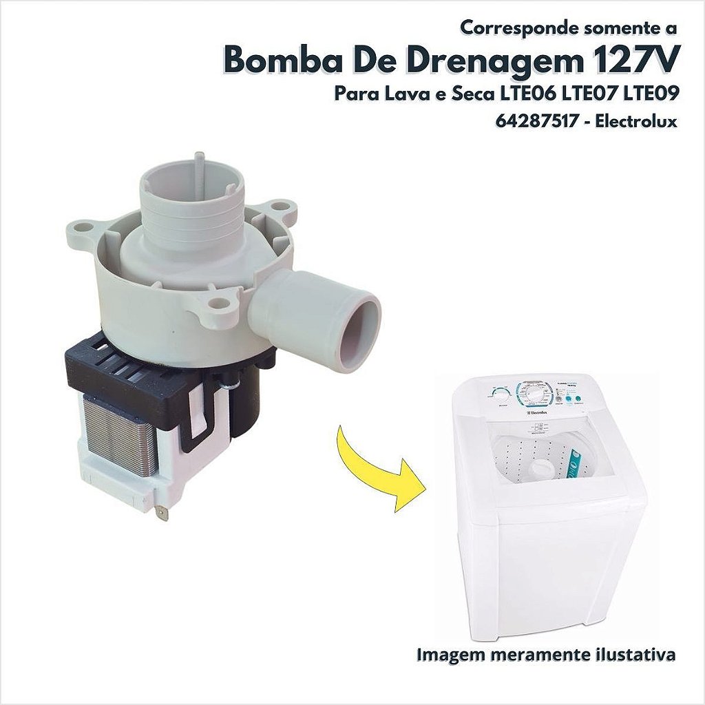 A Eletrobomba de Drenagem Completa 127V para Lava e Seca da Electrolux é essencial para garantir uma lavagem e secagem eficientes. Sua função principal é remover a água dos tambores, permitindo ciclos higiênicos e de qualidade. Compatível com modelos LTE06, LTE07 e LTE09, proporciona praticidade e durabilidade.