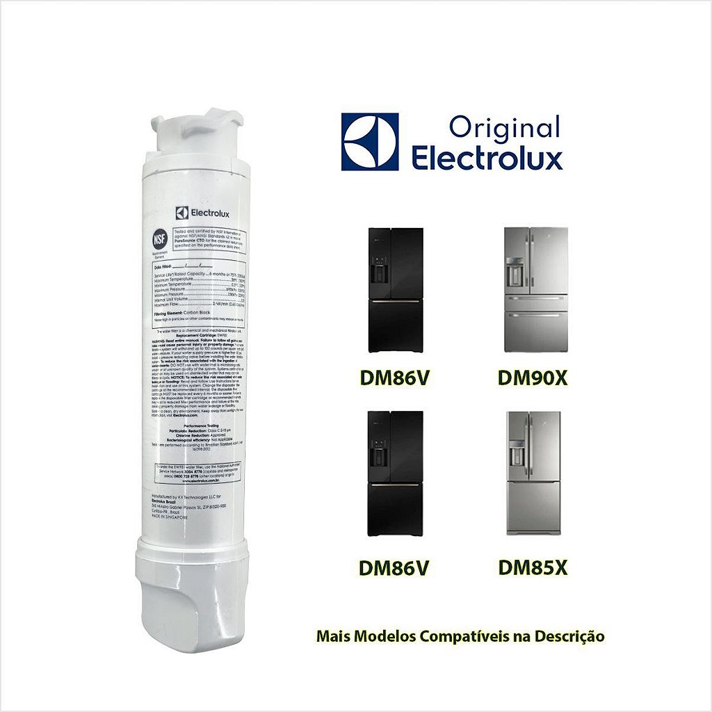 Projetado para manter a água do seu refrigerador livre de impurezas, o filtro de água da Electrolux também reduz impurezas sólidas, cloro, odores e sabores indesejados. Certifique-se de utilizar o modelo compatível com seu refrigerador para garantir sua saúde e o bom funcionamento do eletrodoméstico.