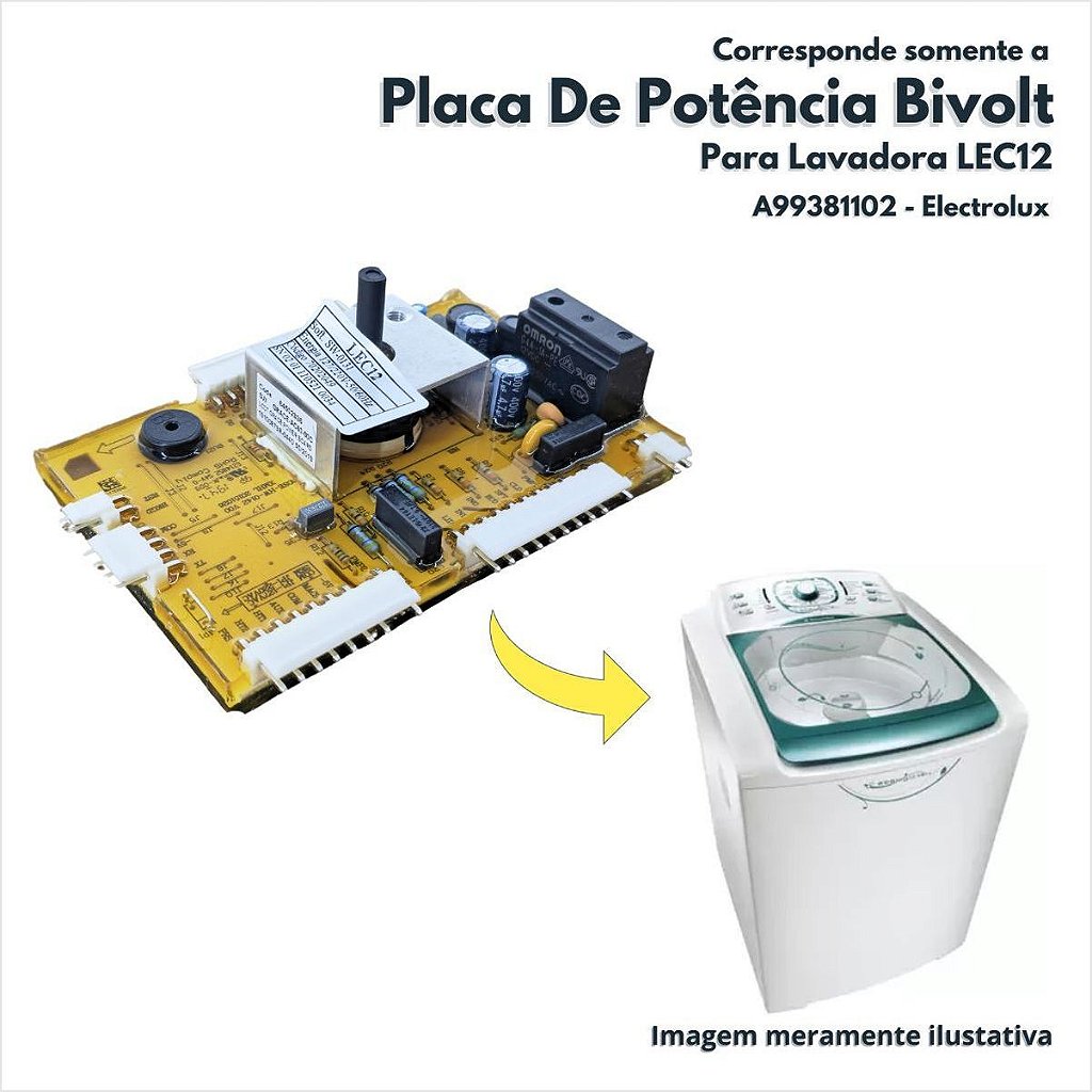 Além de garantir a funcionalidade da lavadora, a Placa de Potência Bivolt para Lavadora LEC12 da Electrolux possui dimensões compactas, facilitando sua instalação. Verifique a compatibilidade com o seu modelo antes da compra e conte com peças originais de distribuidores autorizados.