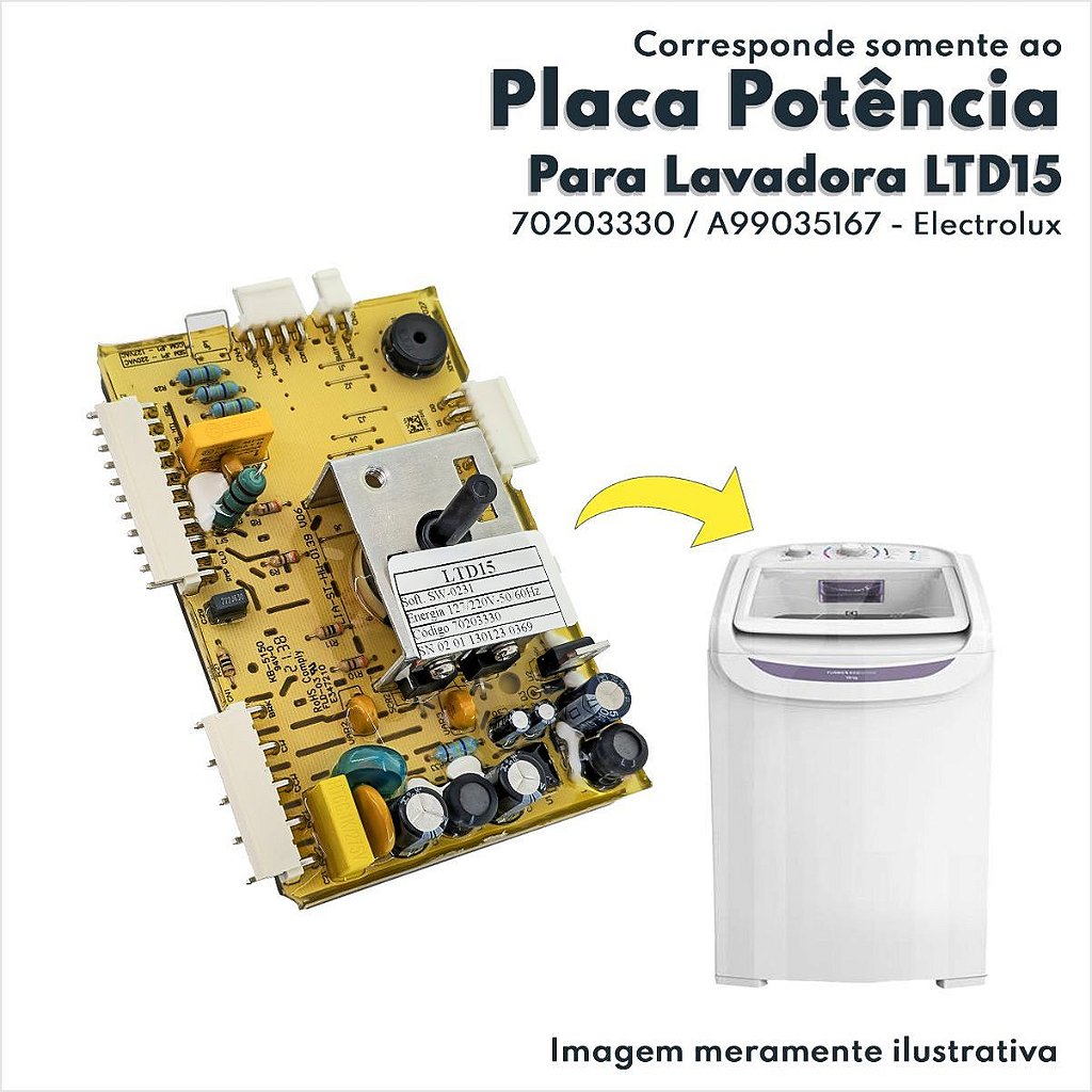 A Placa Eletrônica de Potência para Lavadora de Roupas Electrolux LTD15 é essencial para garantir o controle preciso dos ciclos de lavagem, garantindo o melhor desempenho na hora de lavar suas roupas. Esta peça original da Electrolux proporciona qualidade e durabilidade, sendo compatível com o modelo LTD15 e oferecendo 90 dias de garantia.