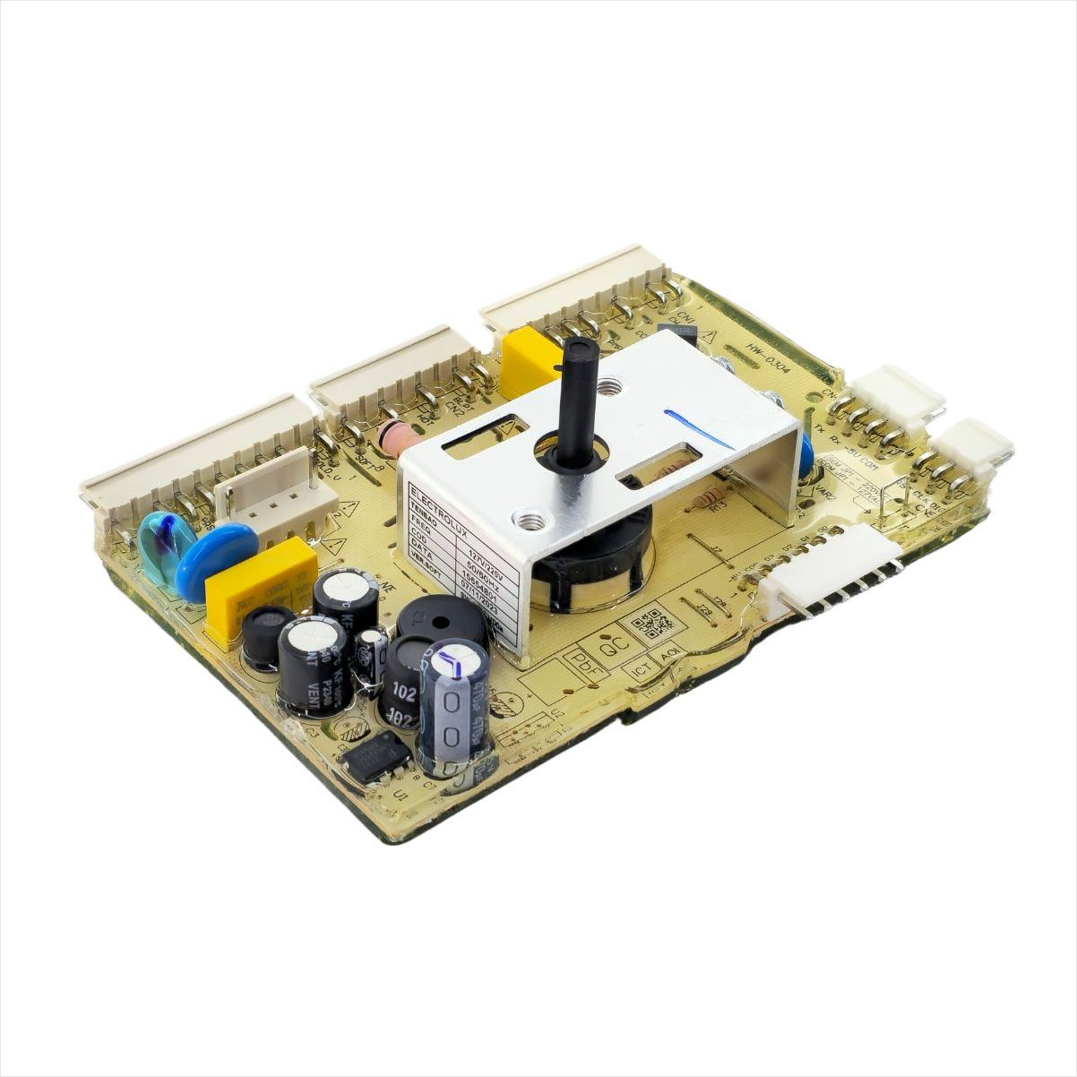 Ela regula e distribui a energia elétrica para os diferentes componentes da lavadora, como o motor, válvulas de água, bombas de drenagem e outros dispositivos.